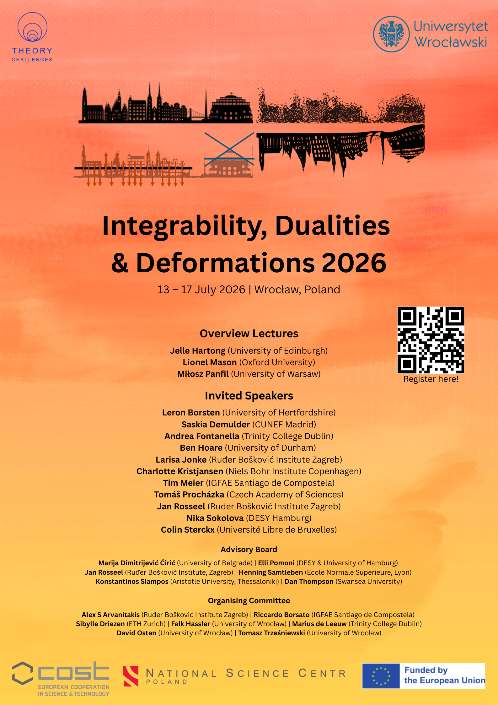 The goal of this year's Integrability, Dualities and Deformations conference is to bring together leading theoretical and mathematical physicists who are experts in: