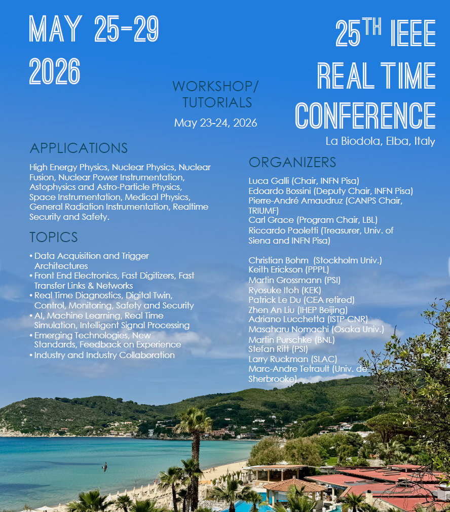 Like the previous editions, RT2026 will be a multidisciplinary conference devoted to the latest developments on real time techniques in the fields of plasma and nuclear fusion, particle physics, nuclear physics and astrophysics, space science, accelerators, medical physics, nuclear power instrumentation and other radiation instrumentation.