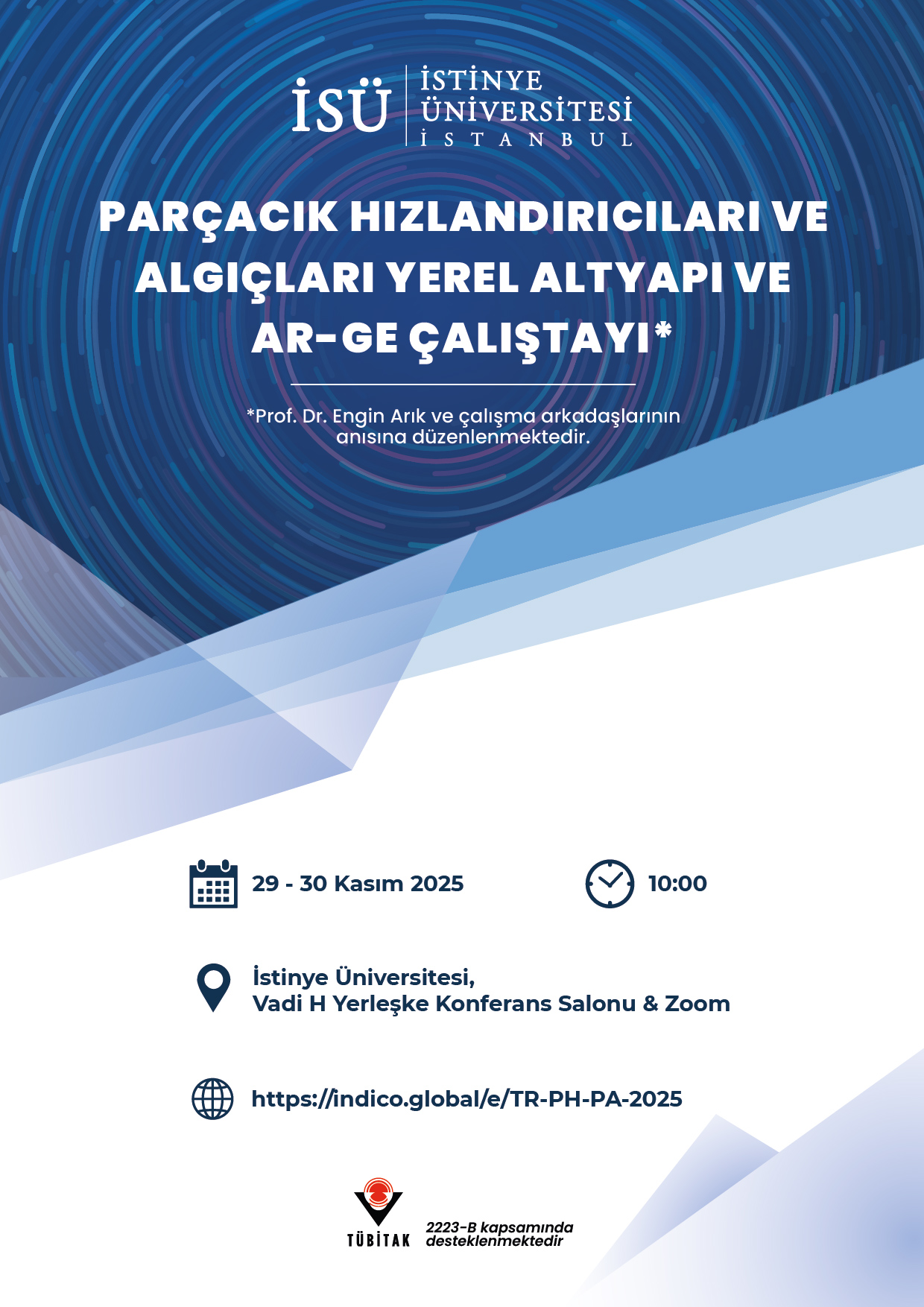 Hibrit olarak (hem yüzyüze hem uzaktan erişim ile Zoom üzerinden) yapılacak olan bu çalıştayın amacı parçacık hızlandırıcıları ve parçacık algıçları konularında yerel olarak yürütülen Ar-Ge faaliyetleri ile mevcut ve kurulmakta olan ya da kurulması önerilen/planlanan altyapı tesisleri hakkında bilgilendirme ve değerlendirme ortamı yaratmaktır.