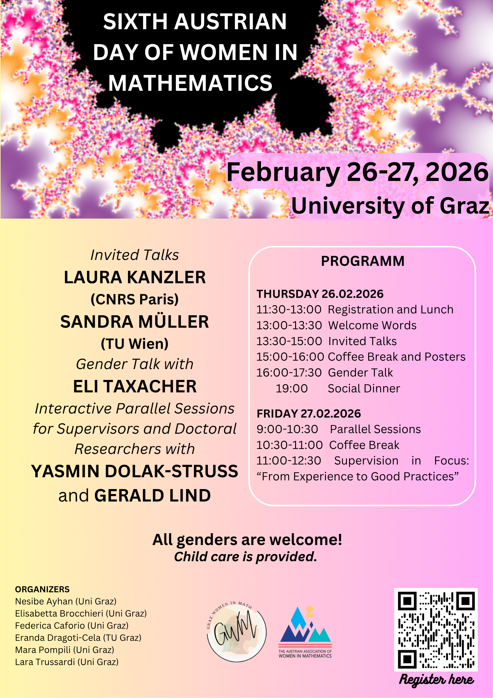 Graz Women in Math is hosting the sixth “Austrian Day of Women in Mathematics” on 26-27 February 2026, organized by the Austrian Association of Women in Mathematics,.