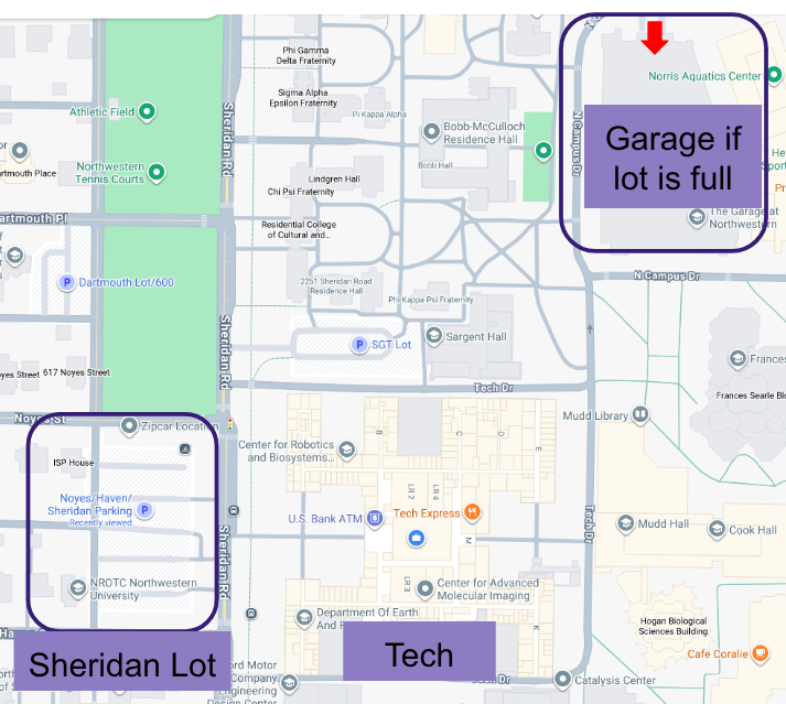 On Saturday, you should be able to park in the visitor lot directly across from the Tech building on Sheridan road. In the case that it is full, you may try the parking garage by the MEC/sports pavilion