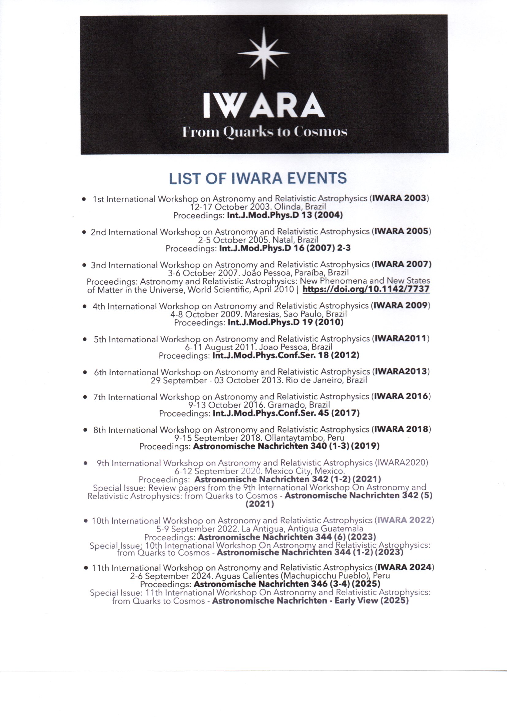 IWARA2026 - 12th International Workshop on Astronomy and Relativistic Astrophysics