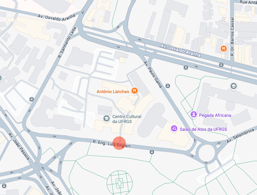 A entrada ao estacionamento será pelo portão da Rua Luiz Englert, pelo lado do Parque da Redenção. A imagem abaixo indica a posição do portão em relação ao Campus Centro.
